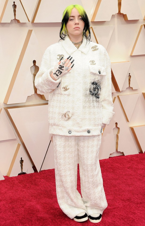 На другиот крај од стилската скала секогаш посебната Били Ајлиш, во комплетот на „Шанел“, кој повеќе наликува на тренерки.