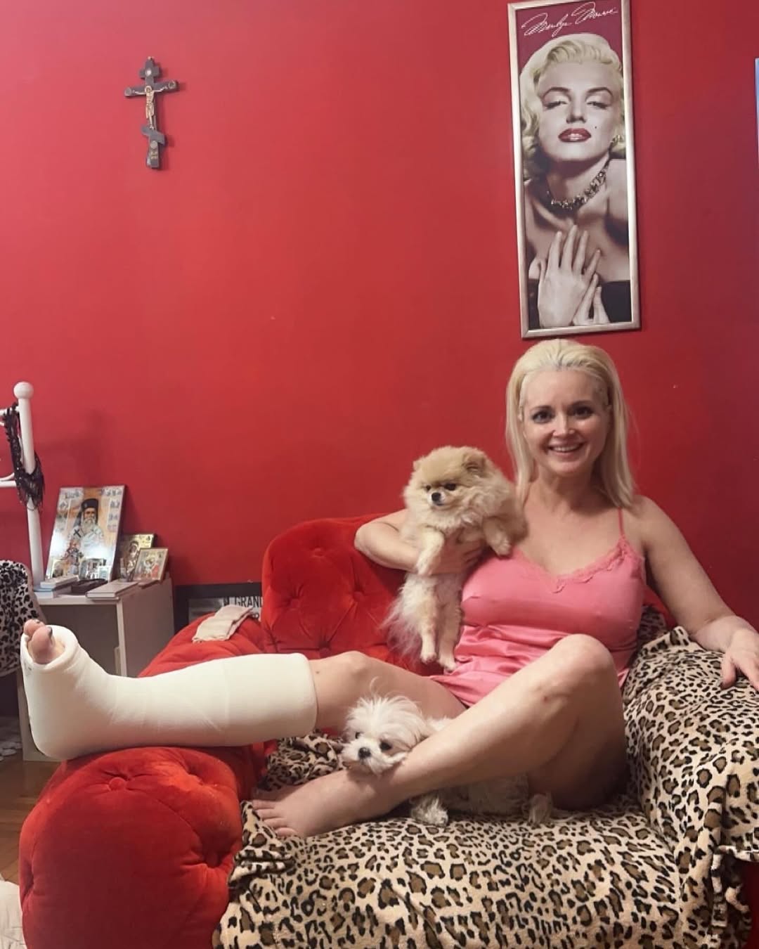 Покрај тоа, таа ја крена повредената нога, со што гипсот ѝ дојде во преден план.