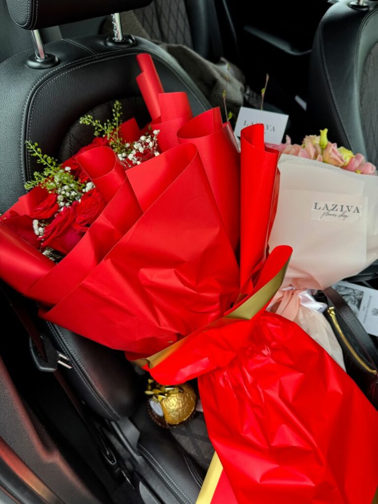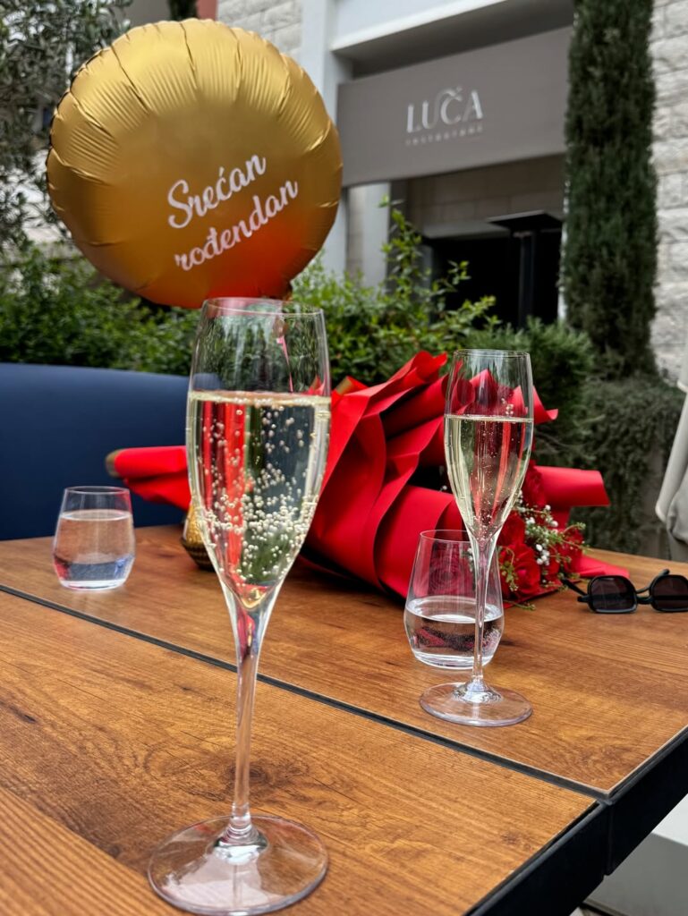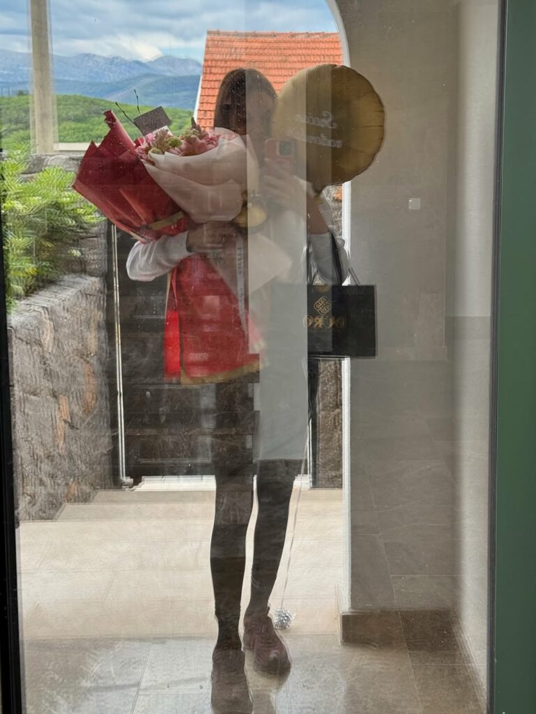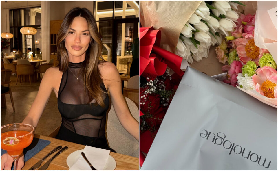 Во објавите се гледа и голем букет рози што го добила од него, како и атмосферата исполнета со шампањ и коктели.