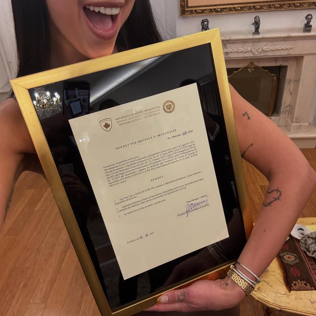 „Особена чест е денес, со претседателски декрет, да ѝ доделам државјанство на Република Косово на Дуа Липа, една од најзначајните културни и уметнички личности во историјата на нашата земја. Дуа и Косово отсекогаш биле неразделни. Таа беше и останува еден од најмоќните гласови на најголемите светски сцени, а со своите достигнувања пишува историја и претставува инспирација за милиони луѓе ширум светот“, изјави Османи.