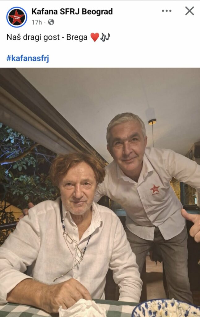 Бреговиќ викендов го поминал во Белград, а негова слика објави еден рестоан кој се вика „Кафана СФРЈ“, кој е познат по домашната кујна и скарата. Бреговиќ избрал опуштено и домаќинско место за ручек/вечера каде што веројатно се чувствува удобно, и покрај целото богатство кое го поседува.