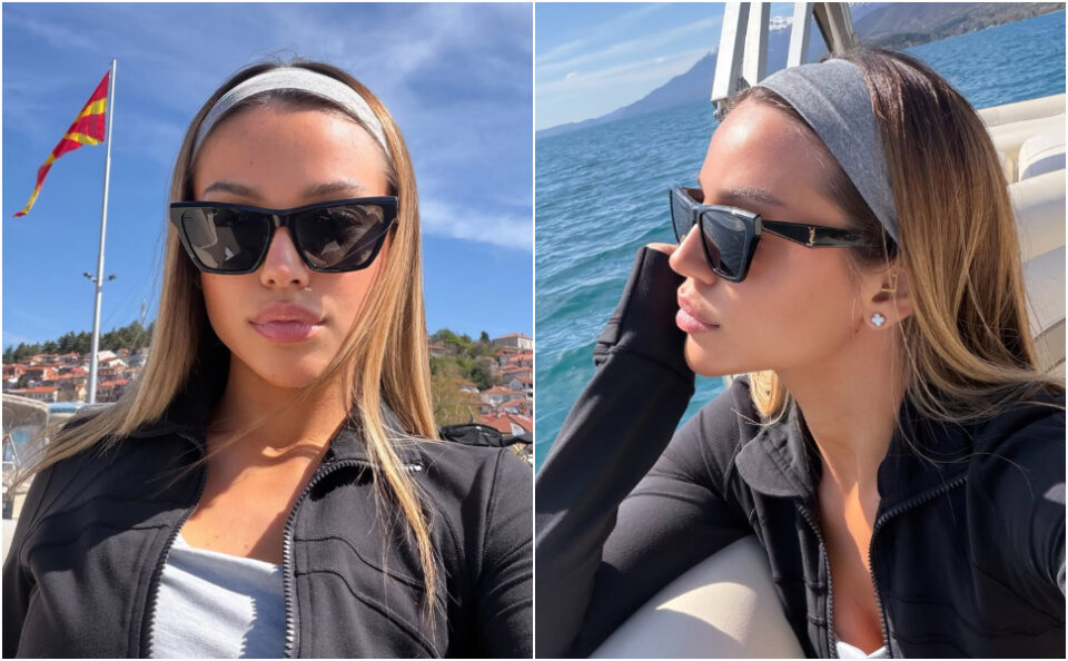 Младата ѕвезда на социјалните мрежи на Инстаграм сподели серија фотографии од својата посета, на кои може да се види како плови со глисер по Охридското Езеро, но и како го посетува манастирскиот комплекс Свети Наум.
