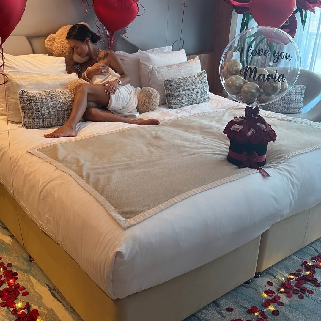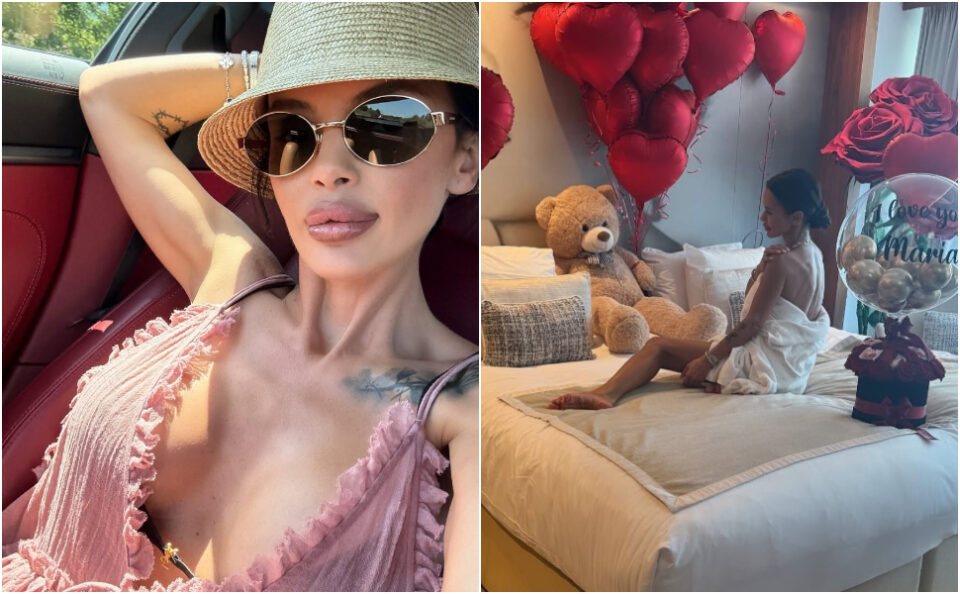 Марија, која неодамна стапи во брак, на социјалните мрежи објави низа фотографии од хотелската соба за младенци, каде позира облечена само во бањарка.