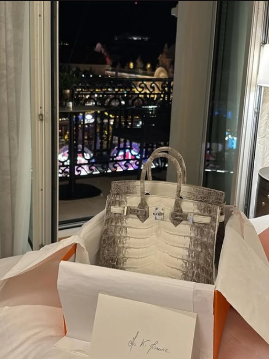 Станува збор за една од најскапите „Биркин“ чанти во светот. Чантата е изработена од ретка кожа од нилски крокодил, обоена во специфичен „Himalaya“ градиент кој преминува од бела во сива боја, а често содржи и метални делови од 18-каратно злато украсени со дијаманти.