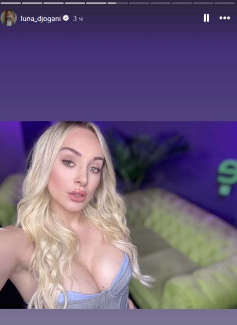 На објавата што ја сподели на својот Инстаграм профил, Луна позира во тесен син корсет кој ги истакнува нејзините бујни гради. Со заводлив поглед вперен во камерата, Ѓогани привлече големо внимание, а нејзиниот изглед предизвика лавина коментари и лајкови.