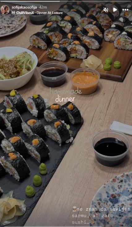 Можеби не е вешта во подготовка на српски специјалитети, но затоа јапонска храна приготвува како вистински мајстор за суши. Инфлуенсерката своето умење го покажа и на Инстаграм.