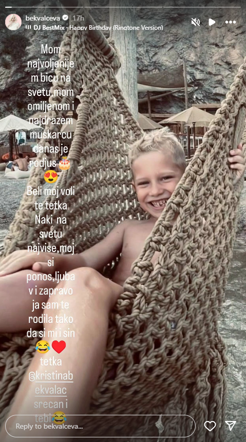 Инаку, Ноа, синот на Кристина, е единственото машко дете во фамилијата, а посебна желба му упати и гордата тетка, пејачката Наташа Беквалац.