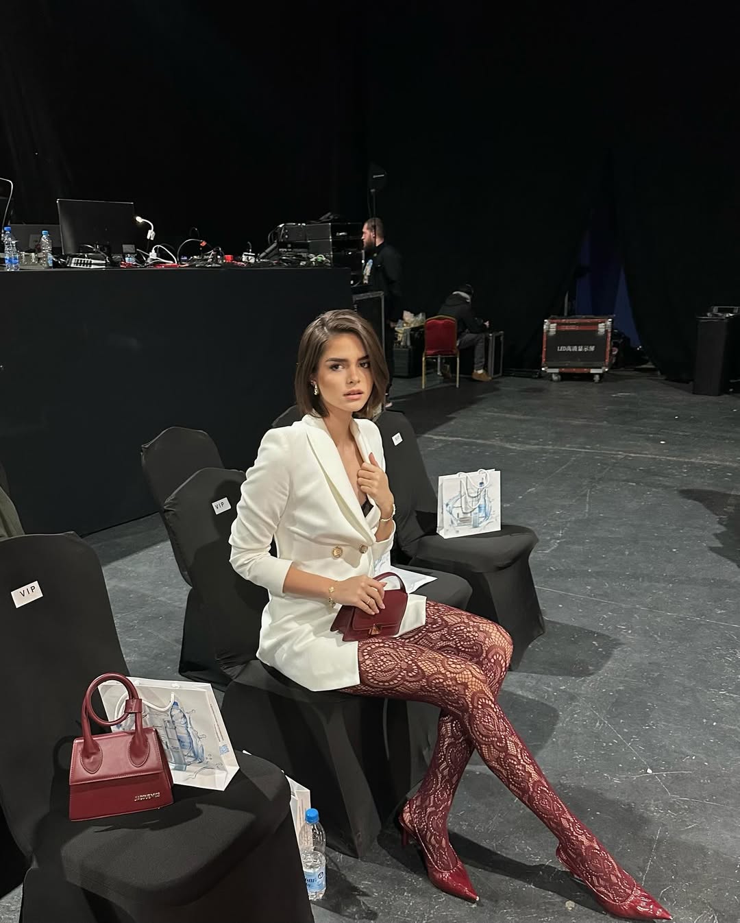 На една модна ревија, поранешната сопруга на Игор Којиќ се појави во црвени чипкани чорапи и штикли во иста боја, комбинирани со бел сако. Под фотографијата на Инстаграм таа напиша: „Од едицијата: Да бидам манекенка“.