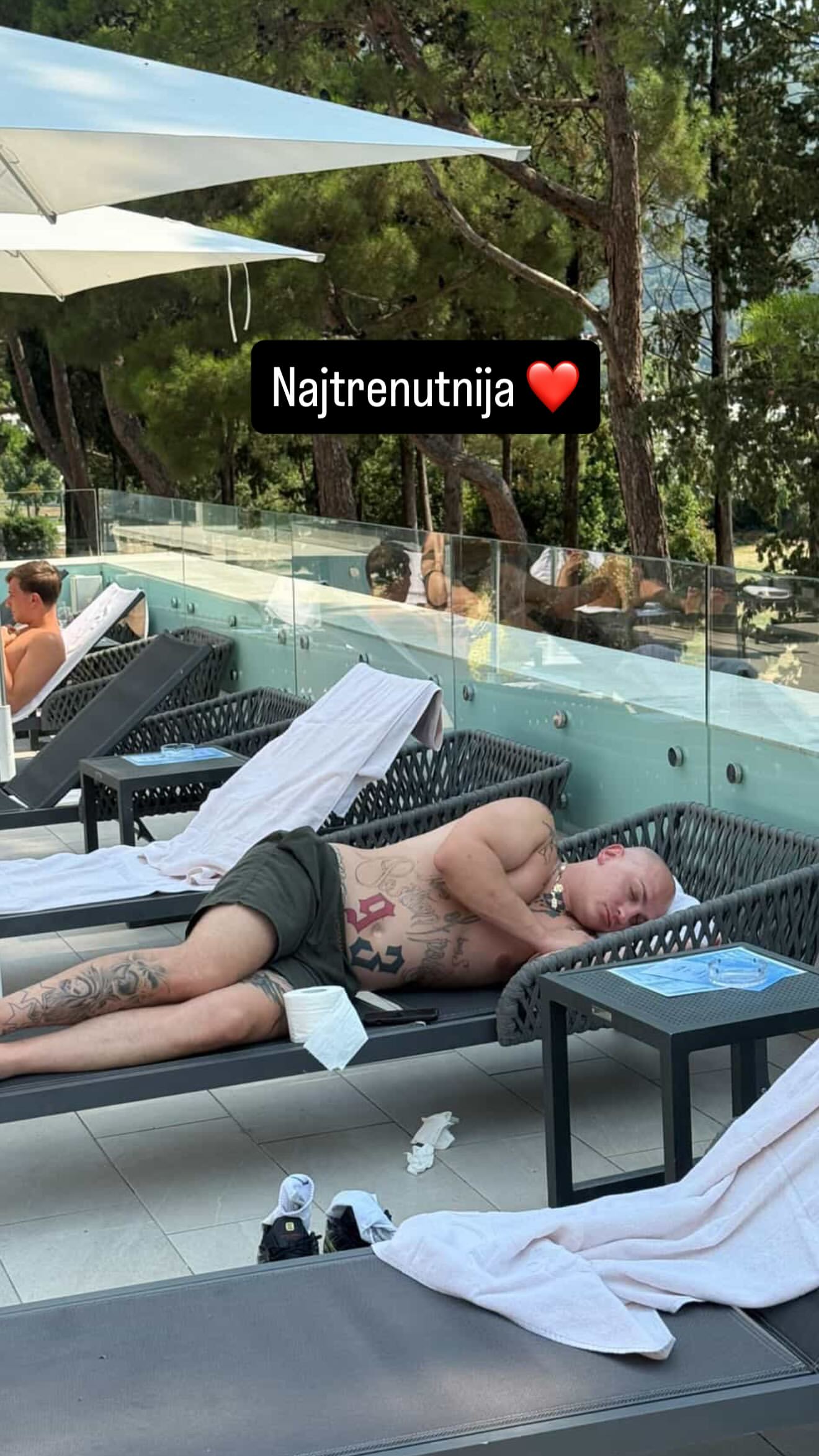 Ова го покажа неговата менаџерка Тамара Мариќ, која го фотографираше додека одмараше на лежалка во Црна Гора, каде што настапуваше бројни пати во последните два месеци.