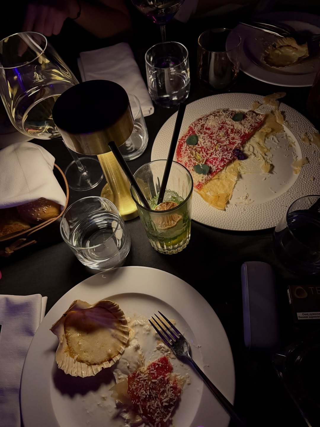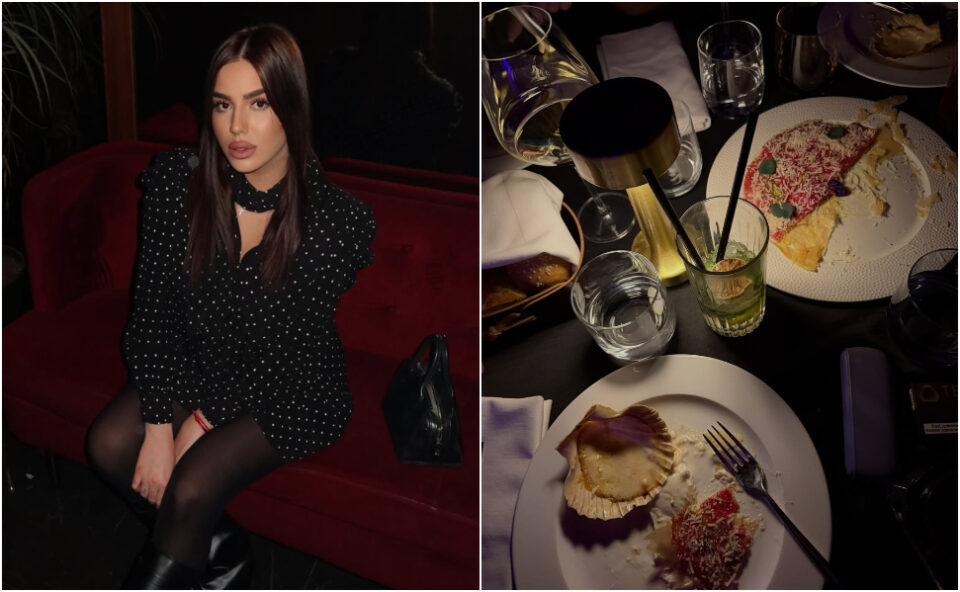 Освен атмосферата од локалот, Уна покажа и маса преполна со деликатеси. Меѓу нив имало и школки, познати како природен афродизијак, како и пијалаци со кои наздравувала заедно со пријателите.