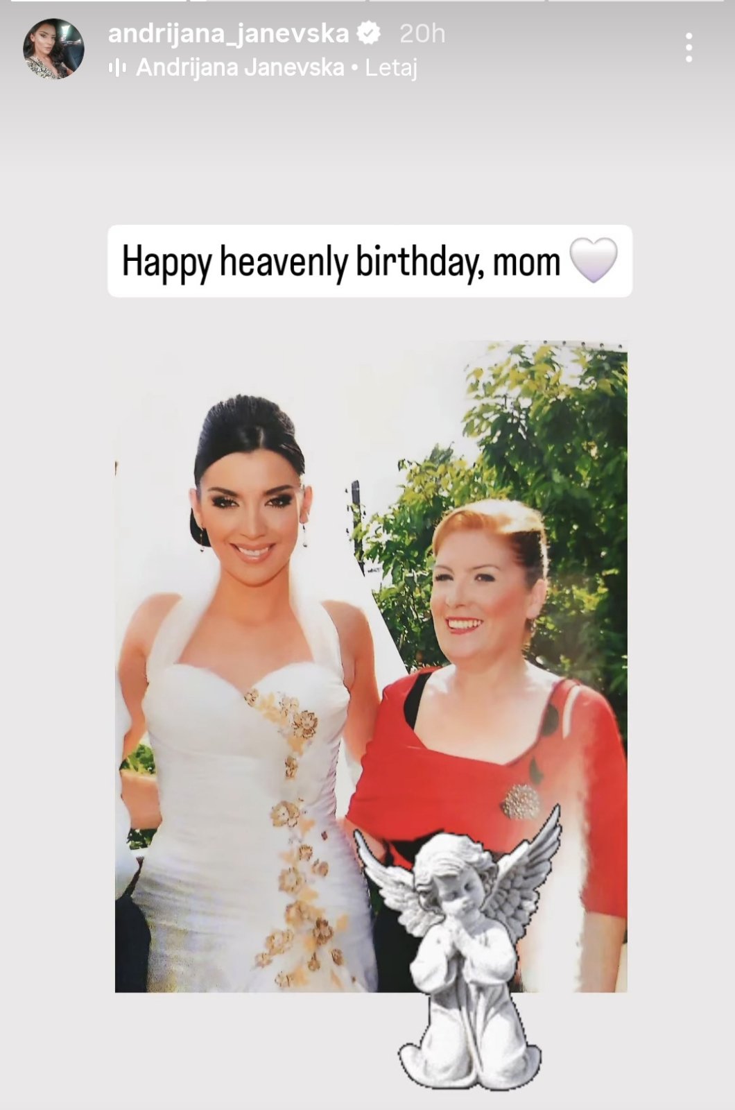 -Среќен небесен роденден мама- напиша пејаката до слика со мајка ѝ Нада, а сликата е од свадбата на Андријана и нејзиниот сопруг, музичарот Драган Гиновски-Гино.
