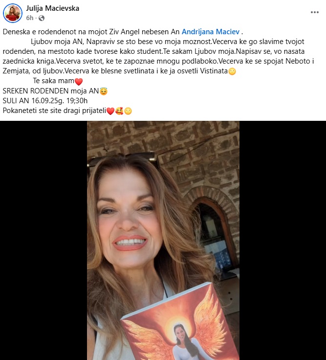 „Денеска е роденденот на мојот жив Ангел небесен Ан, Андријана Мациев .