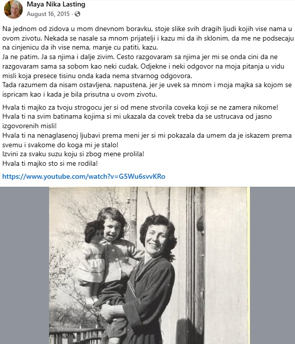 Ова е всушност статус од пред десет години, но Маја, споделувајќи слика од неа и од мајка ѝ кога била мала рече дека оттогаш ништо не се сменило.