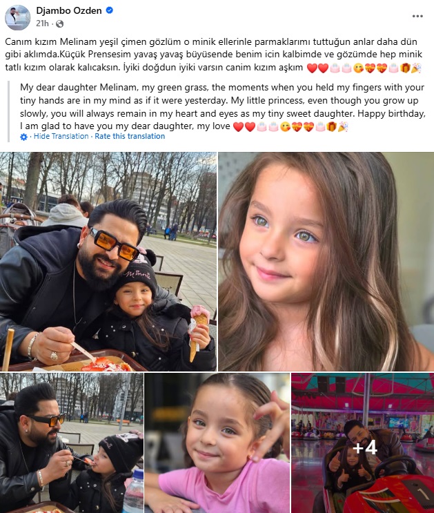 Најстара е ќерката Севги која има 15 години, па синот Мерт кој сега има 10 години, па со сопругата добиле уште две девојчиња – Мелинам која има 4 и најмалата ќерка, Алина која има две години. Токму ќеркта Мелинам слави роденден, кој гордиот татко со овие емотивни зборови ѝ го честиташе.