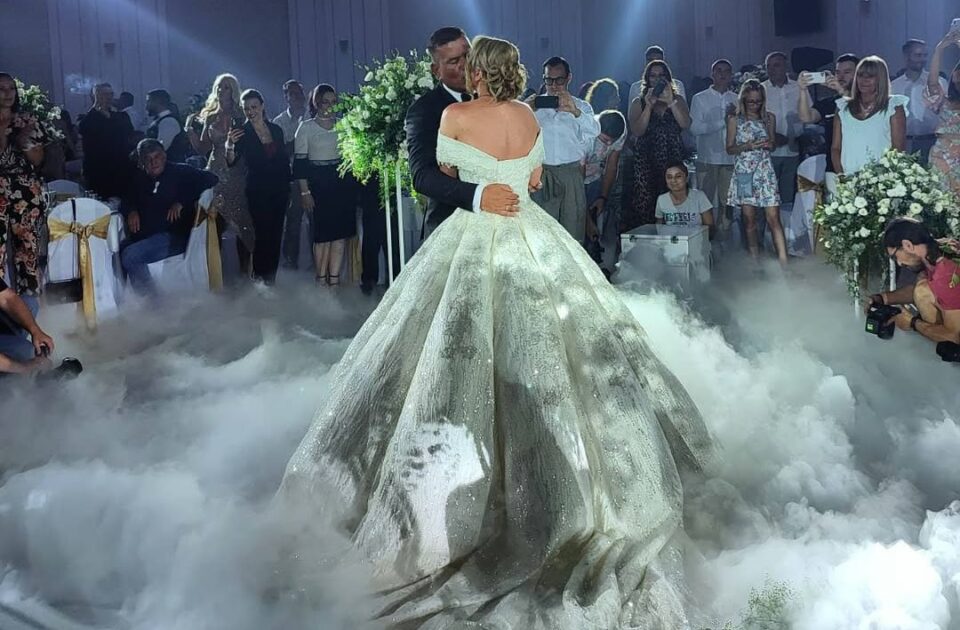 За гламурот да биде комплетен, пејачката во текот на вечерта пресоблекла две раскошни венчаници, а во црквата пристигнала со кочија, што на целиот настан му дал филмски шарм.