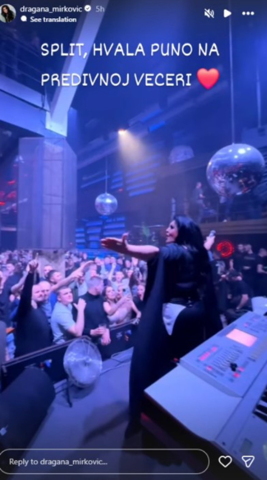 „Сплит, ви благодарам за прекрасната ноќ“, напиша пејачката покрај видеото на кое се гледа преполн клуб и публика која во глас ги пее нејзините најпознати хитови.