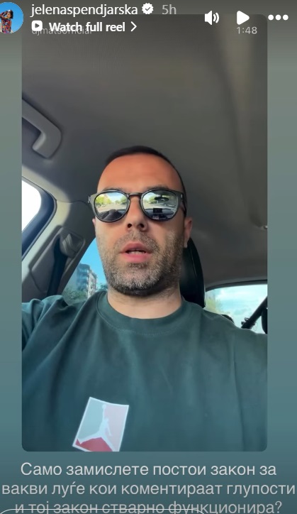 Водителката Спенџарска го сподели видеото и напиша: Само замислете постои закон за вакви луѓе кои коментираат глупости и тој закон навистина функционира?