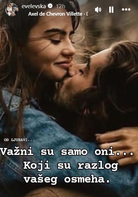 Преку својата последна објава на Инстаграм, Велевска сподели фотографија на која се гледа двојка во блиска, интимна прегратка.