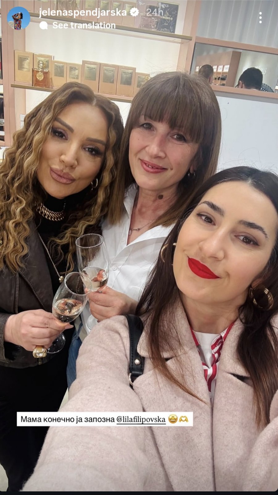 „Мама конечно ја запозна Лила Филиповска“, напиша Јелена до инстаграм-приказната која ја сподели, а на неа е со мајка ѝ и со Лила на настан. На сликата, а и на други кои се споделени претходно, мајката на Јелена изгледа како да ѝ е сестра.