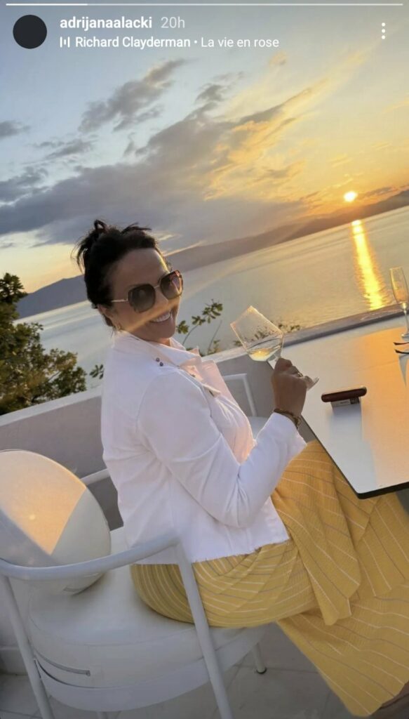 Адријана сега објави една ептен интересна слика, од неа на романтично место, на убава тераса, на зајдисонце со чаша вино. Не се знае кој ја сликал и со кого е во друштво, но сигирно е дека знае дека е дама која знае да ужива со стил.