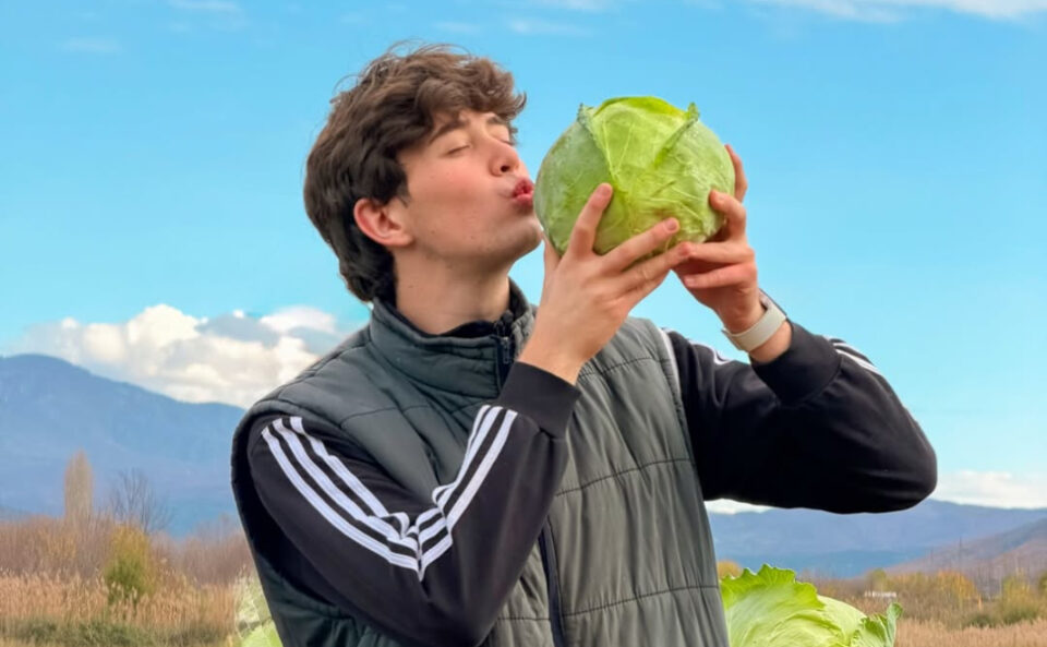 Сцените од полето покажуваат поинаква страна од популарниот тиктокер – далеку од социјалните мрежи и градската динамика, во атмосфера што потсетува на детството и корените од кои потекнува.