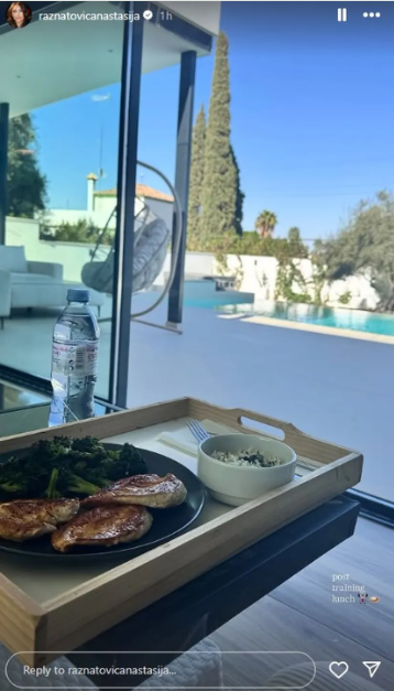 – Објави, тренирај, јади – напиша Анастасија Ражнатовиќ, која ручаше во својата вила покрај базенот, во описот на фотографијата.