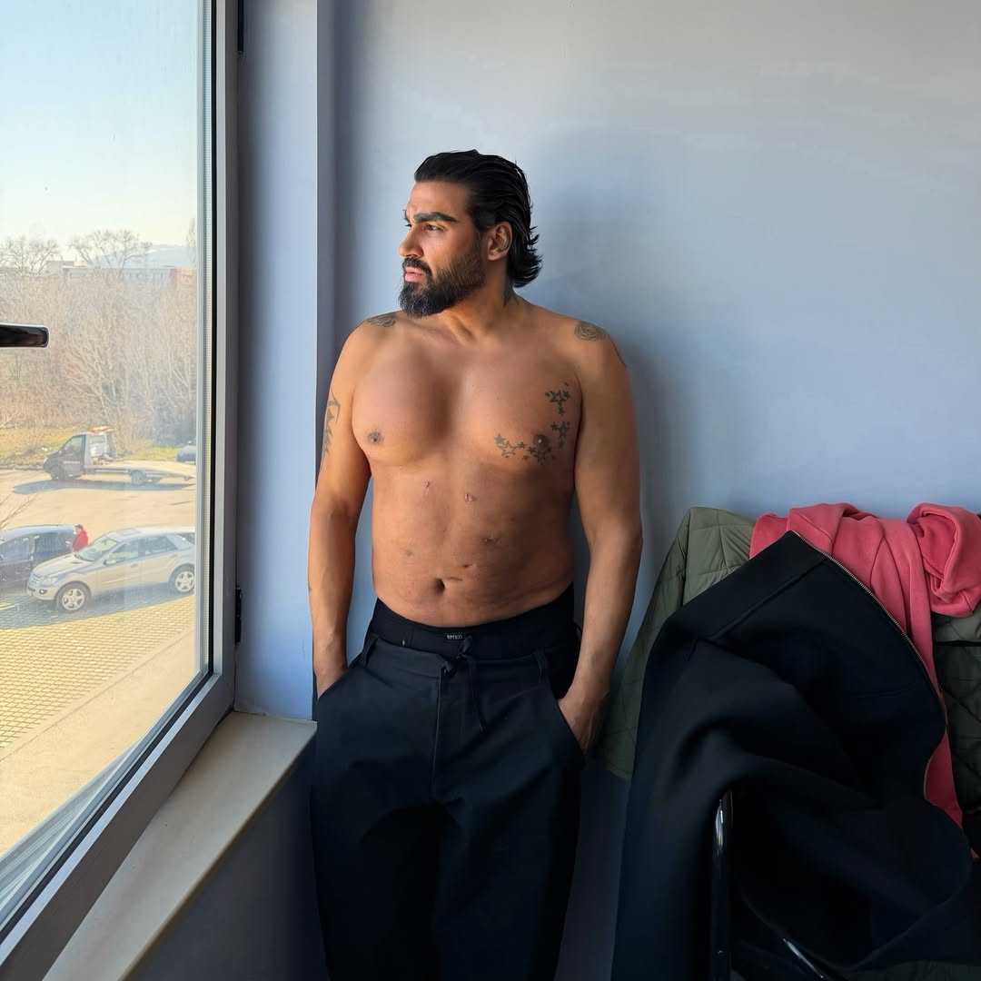 „Трета недела по операцијата за зголемување на градите со машки импланти. Се чувствувам посебно. Повеќе не одам подгрбавен, туку гордо исправен, затоа што ги носам овие прекрасни гради“, напиша тој.