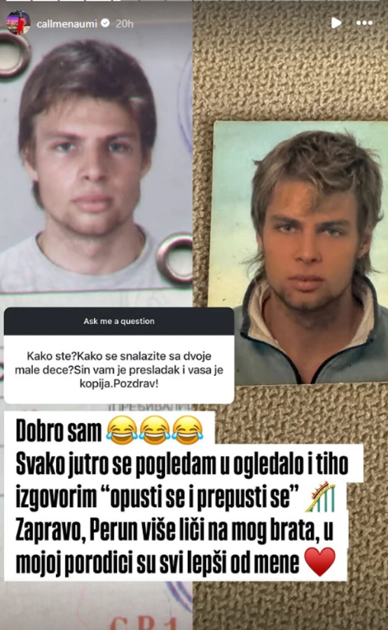 Водителката Мина Наумовиќ важи за едно од најубавите ТВ лица на овие простори, а дека убавината ѝ е во гените, на сите им стана јасно кога ја покажа фотографијата од својот роден брат. Имено, одговарајќи на прашања на следбениците на социјалните мрежи, сопругата на Огњен Амиџиќ откри дека нивниот син Перун повеќе личи на нејзиниот брат отколку на неа.