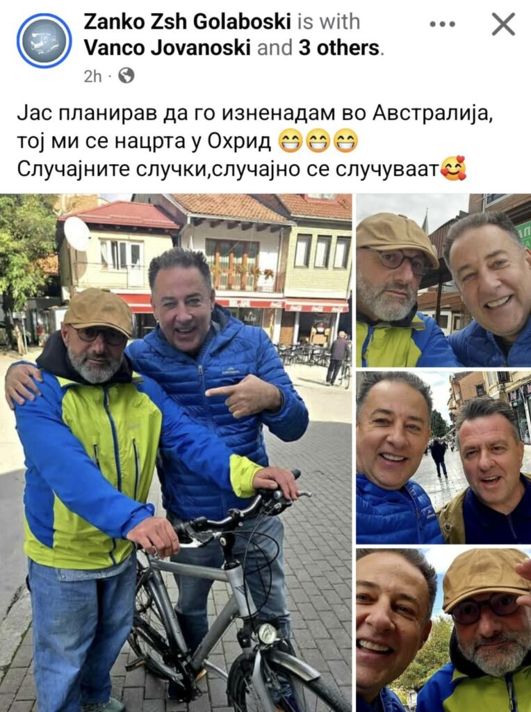 -Јас планирав да го изненадам во Австралија, тој ми се нацрта у Охрид. Случајните случки,случајно се случуваат“, рече Жанко за Дарко кој е дојден на одмор најверојатно.