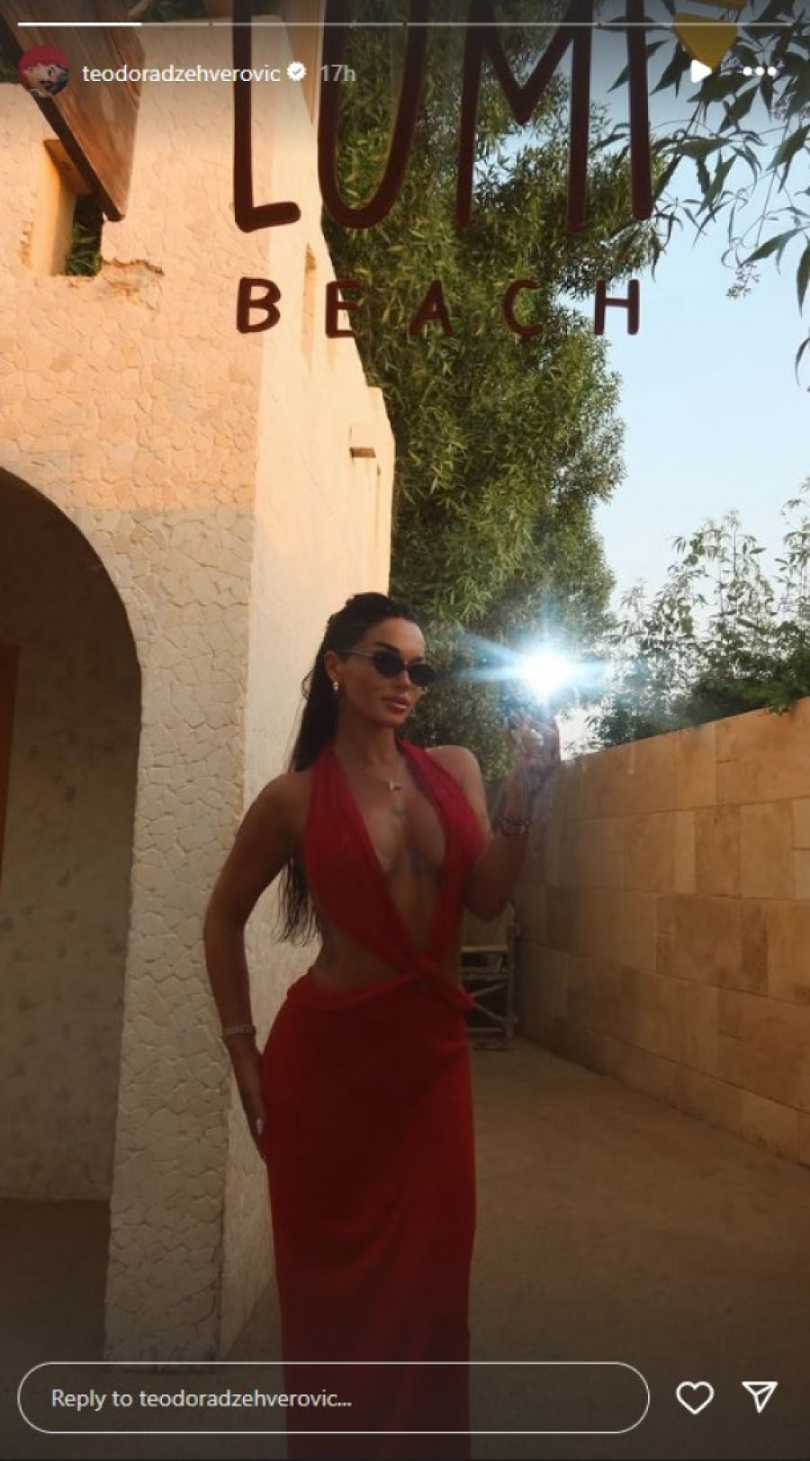 На својот Инстаграм профил, кој има стотици илјади обожаватели, Теодора сподели фотографии на кои позира во ефектен, огнено црвен фустан.
