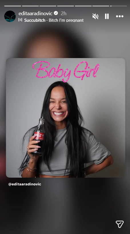Пејачката Едита Арадиновиќ потврди дека е во блажена состојба на својот инстаграм-профил, а многумина мислат дека во таа прилика го откри и полот на детето.