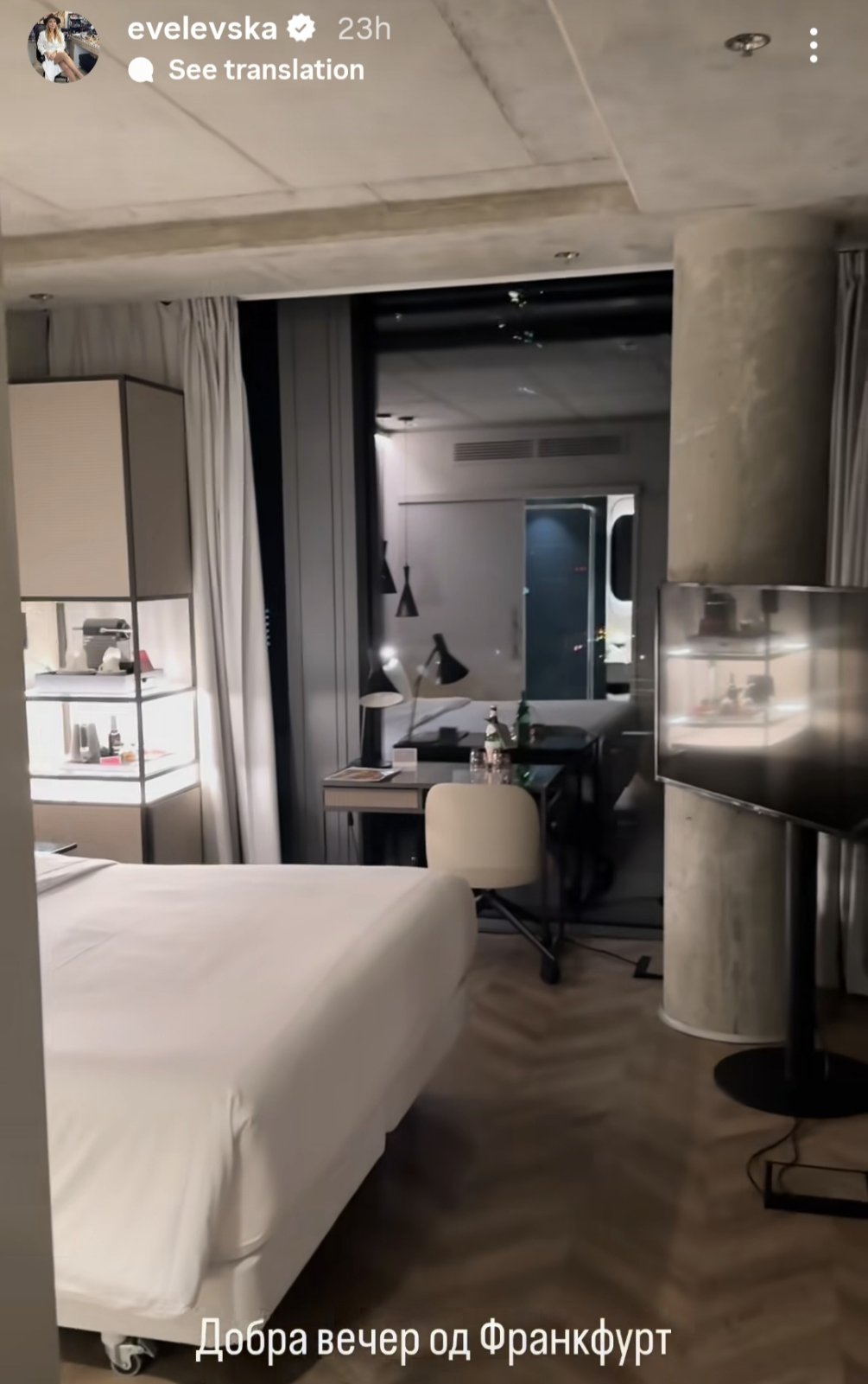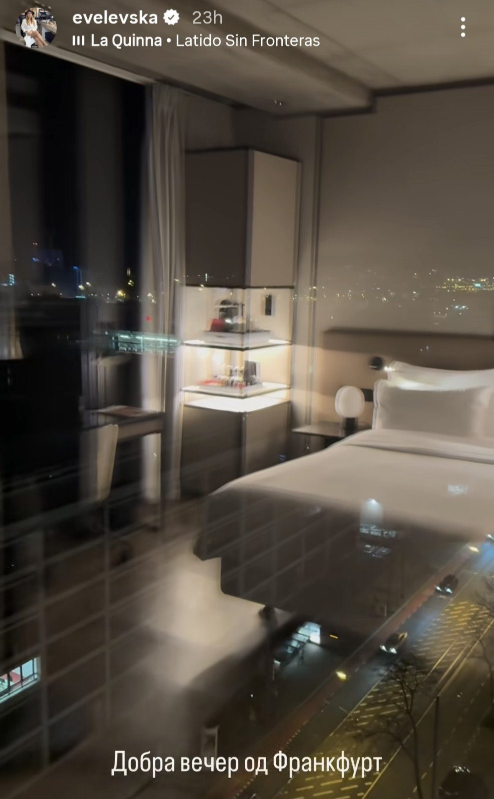 Елена ја покажа убавата хотелска соба, потоа тересата со поглед, а објави и слики од прошетките низ Франкфурт и се гледа дека фолкерката ужива „за сите пари“.
