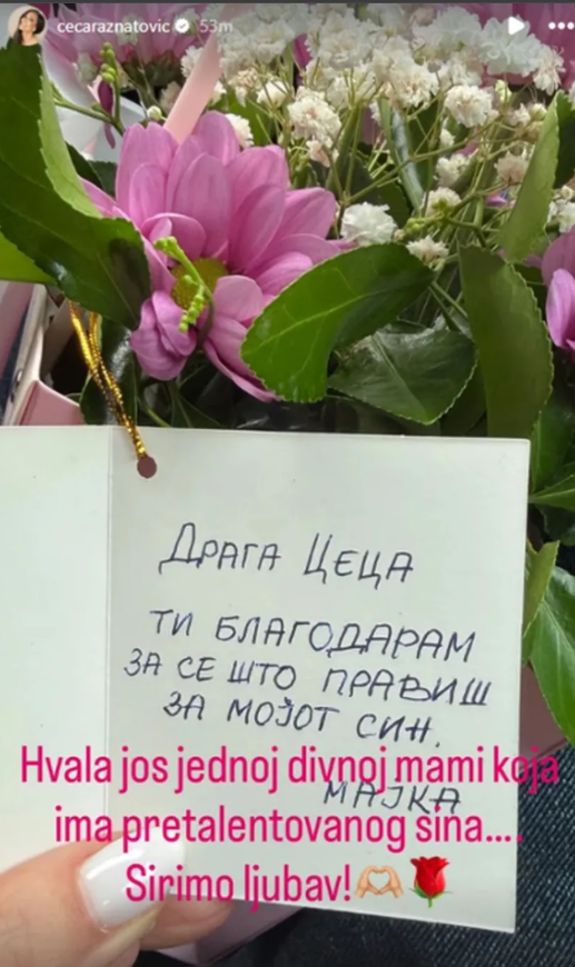 – Драга Цеца, ти благодарам за сè што правиш за мојот син. Мајка.