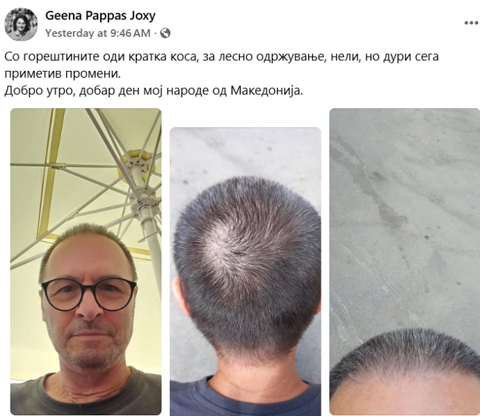 „Со горештините оди кратка коса, за лесно одржување, нели, но дури сега приметив промени. Добро утро, добар ден мој народе од Македонија“, напиша Џокси.