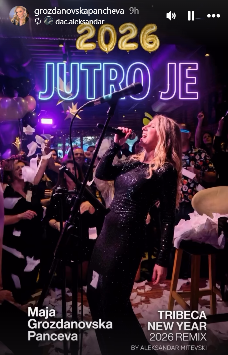 Маја Гроздановска-Панчева заносно изгледала на дочекот на Новата 2026 година. Таа ја помина најлудата ноќ работно, на настап како гостинка на Дац и Александар.