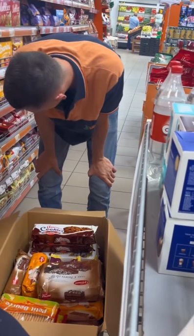 „Дај ми се што имаш“, му рече Слаткар на вработениот од маркетот. Вработените од маркетот му ги спакуваа производите во пакети, а тој им рече дека сега треба да се направи нова нарачка.