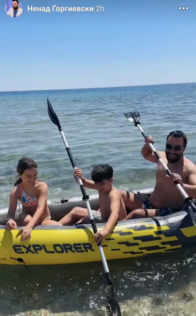 Судејќи по фотографиите споделени на социјалните мрежи, семејството ужива во сончевите денови покрај море, исполнети со смеа, забава и активен одмор. Малите авантури на вода, како возење со гумен чамец, беа дел од нивното секојдневие, додека насмевките на лицата на децата зборуваат повеќе од било каков опис.
