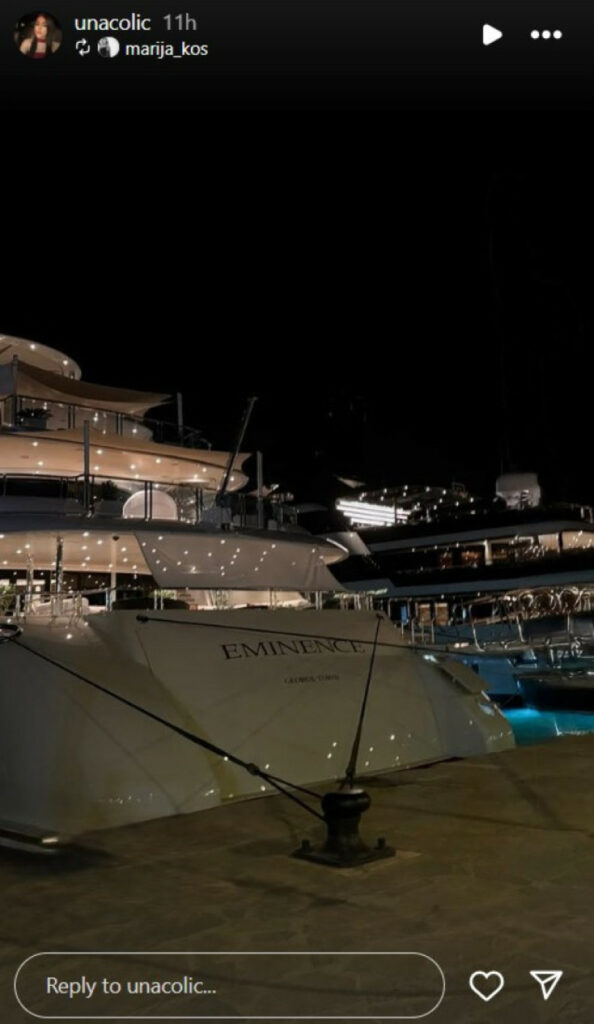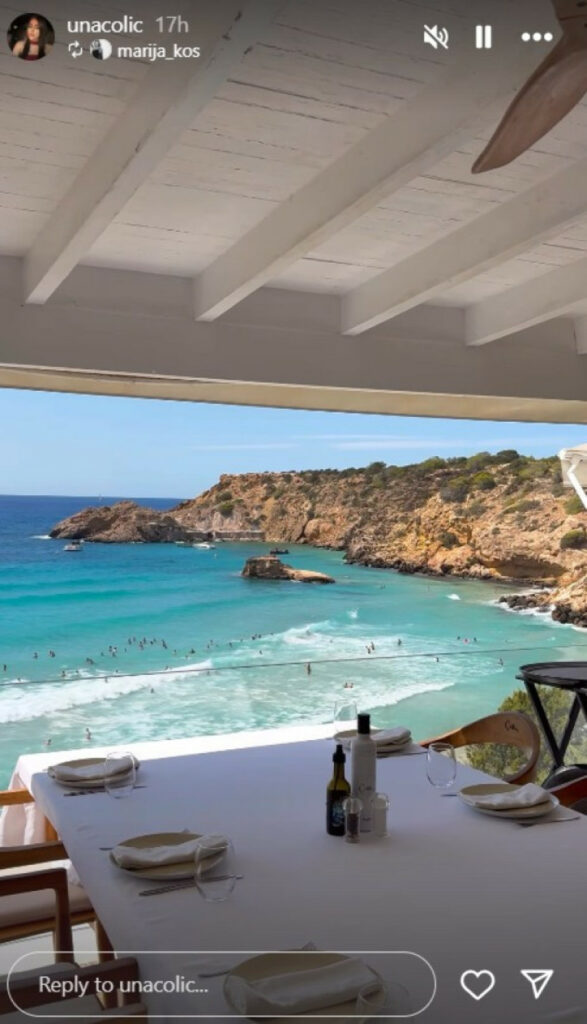 Уна моментално ужива на познатата Ибица – бисерот на Балеарските Острови, позната по својот гламур, ноќен живот и ексклузивни плажи. Овој остров се смета за една од најпосакуваните дестинации за одмор и забава во светот, а Уна не крие колку ужива во секој момент од престојот таму.