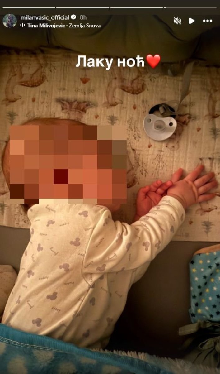 Имено, Милан објави фотографија на Инстаграм на која се гледа како синот спие во кревет. До него има цуцла, а момчето има и сино ќебенце.