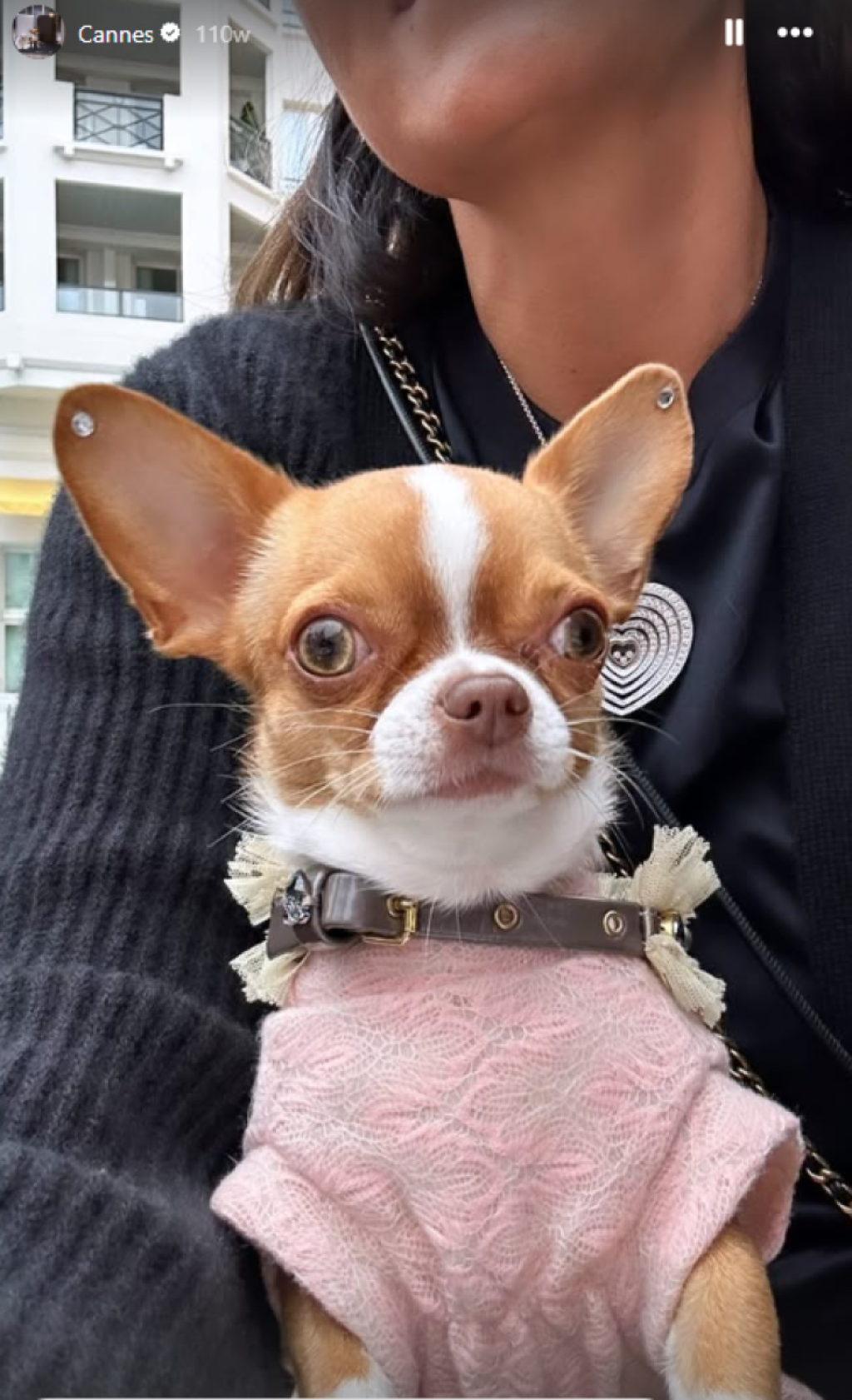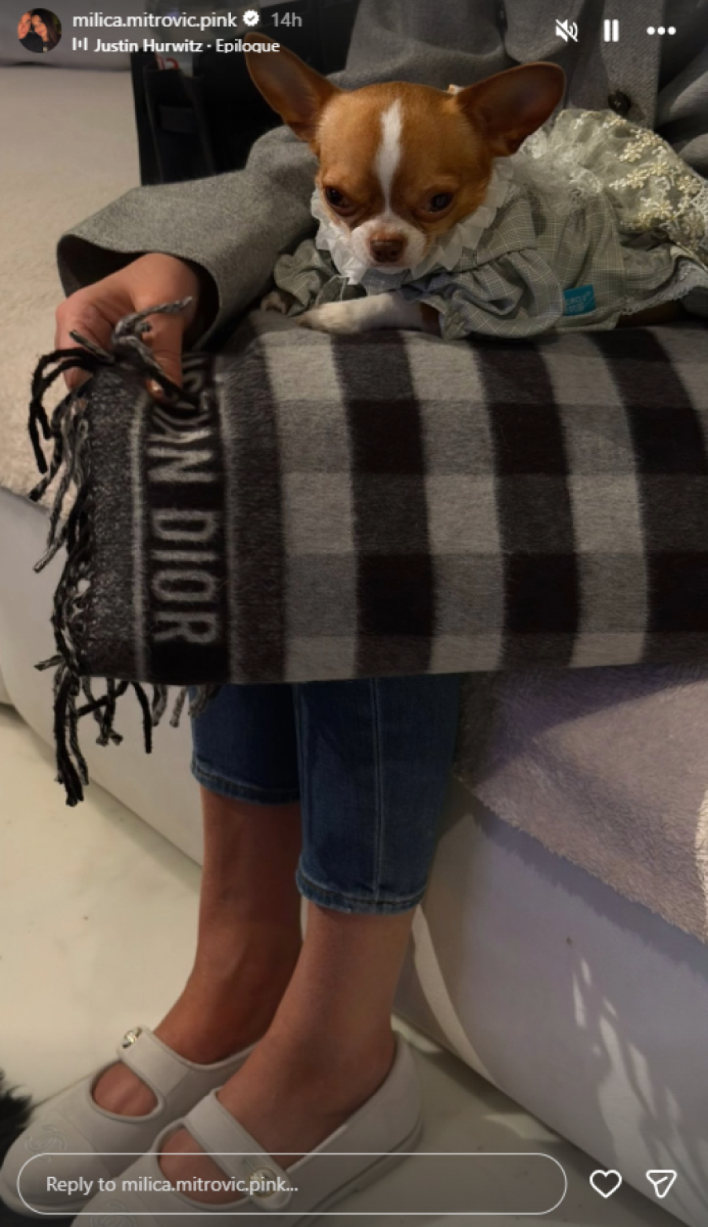 Оваа чивава позираше покрај шал од „Диор“, облечена во кариран фустан со тантела, а фотографијата на Инстаграм ја сподели Милица Митровиќ. Нејзините стилови се повеќе од необични, носи јакни со крзно, златни ѓердани, џемпери од чиста волна, а нејзиниот гардеробер вреди цело богатство.