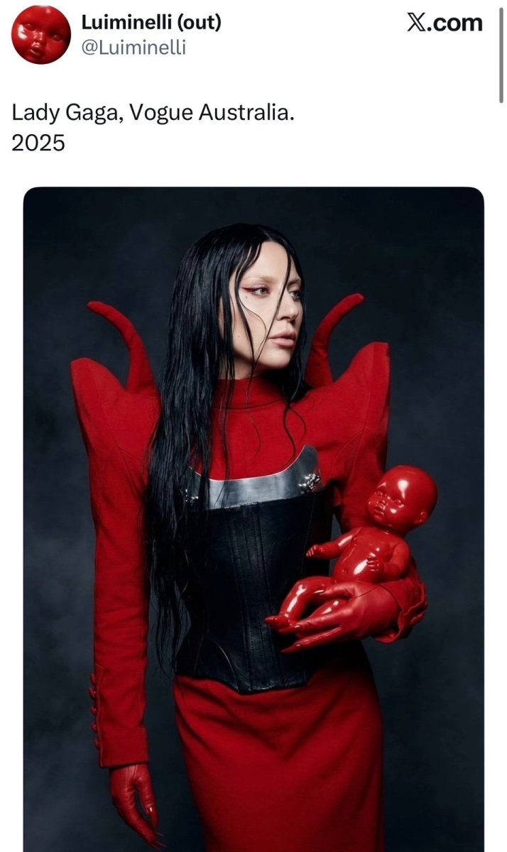 Светската музичка ѕвезда Лејди Гага позирала за новото издание на „Вог“ во стилска инспирација од фотографијата на српската ѕвезда Јелена Карлеуша, на која таа пред речиси една година „доеше бебе“ во златна боја.