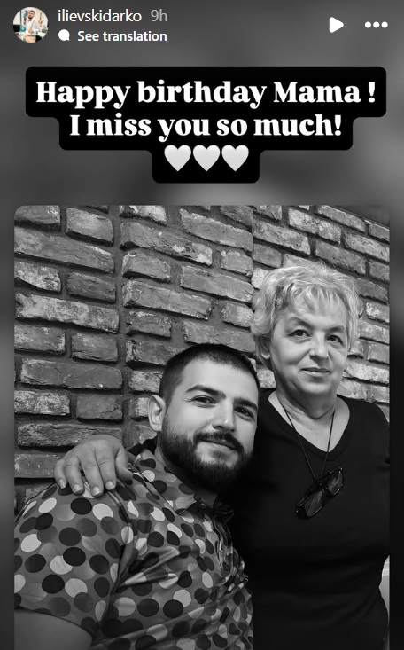 „Драги пријатели, со голема болка ве известувам дека денес си замина и мајка ми… болката е преголема, тишината боли! Ми замина најголемата љубов. Мамо, те сакам најмногу! Чувајте се со тато. Доколу сè уште ги имате своите родители, застанете една минута, јавете им се и кажете им дека ги сакате…еден ден ќе немате можност да го направите тоа!“, напиша Дарко тогаш.