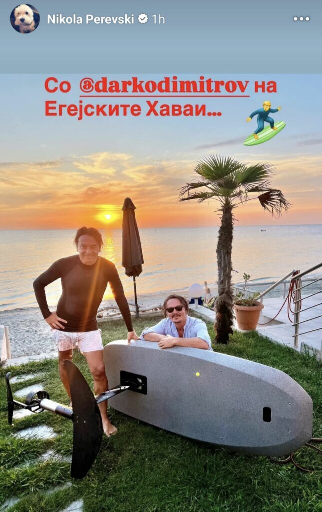 „Со Дарко Димитров на Егејските Хаваи“, напишал Пере кој на семејниот одмор се сретнал со Димитров кој е исто така во Грција.