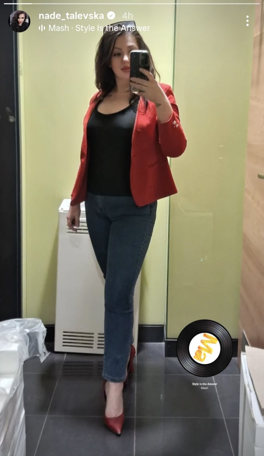На својата последна објава на социјалните мрежи, Талевска изненади со сликата на која е видливо ослабена. Облечена во елегантно црвено сако, тесни фармерки и високи потпетици, таа изгледа посвежо и поенергично од кога било.
