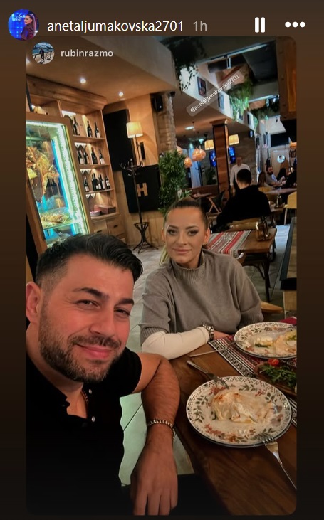 На романтична вечера на специјално место е пејачката Анета Љумаковска со својот сакан, музичарот Рубин Размо.