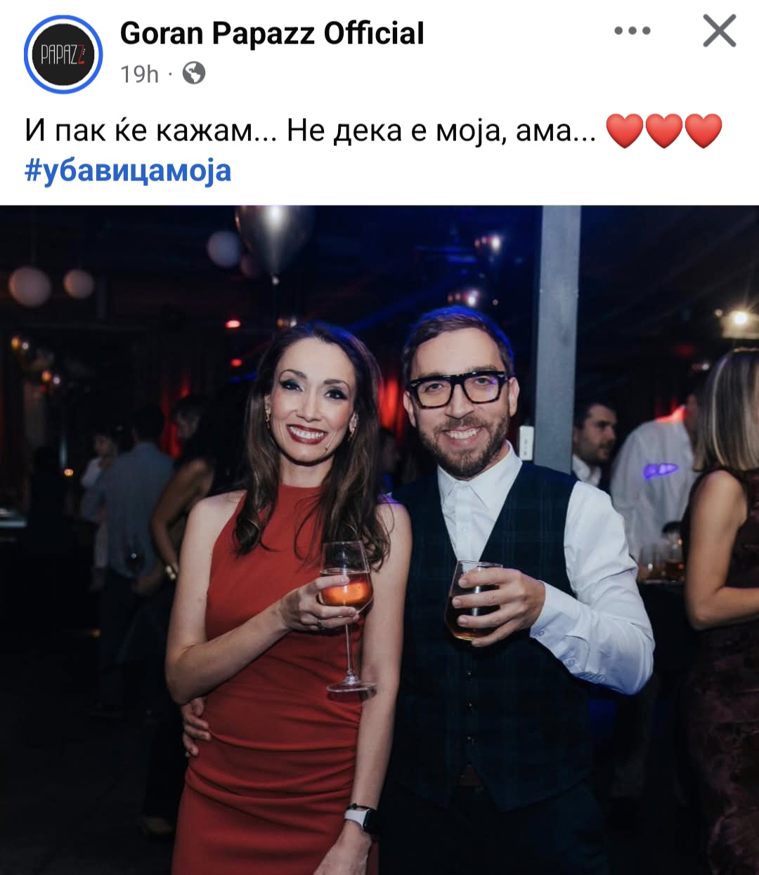 Тој секогаш за сопругата знае да каже: „Не дека е моја, ама е најубава“, а тоа го стори и на најновата слика под која напиша: „И пак ќе кажам… Не дека е моја, ама…Убавица моја“.