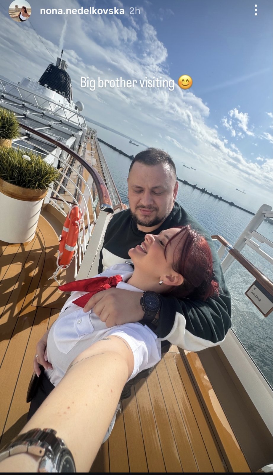 Таа објави слика на која гордо ги покажа облините. Претходно, Ноне сподели дека бродот ја посетил нејзиниот брат.