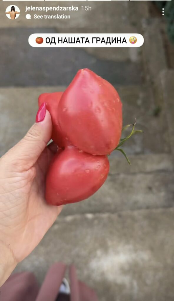 На сликата е домат, домашно одгледуван, а Јелена гордо напишала: Од нашата градина.