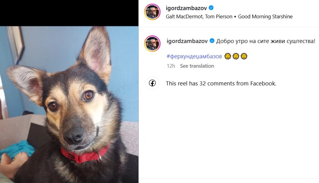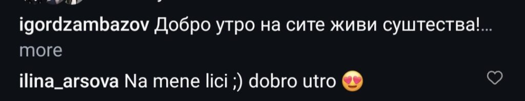 Игор кој сега живее во Дојран објавил слика од неговта миленичка Ферхунде, а меѓу оние кои коментирале е токму Илина која на Игор му напишала: На мене личи. Добро утро.