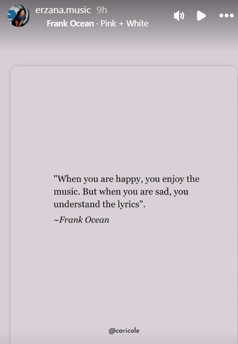 „Кога си среќен, уживаш во музиката. Но, кога си тажен, го разбираш текстот“, е цитатот кој го споделила пејачката.